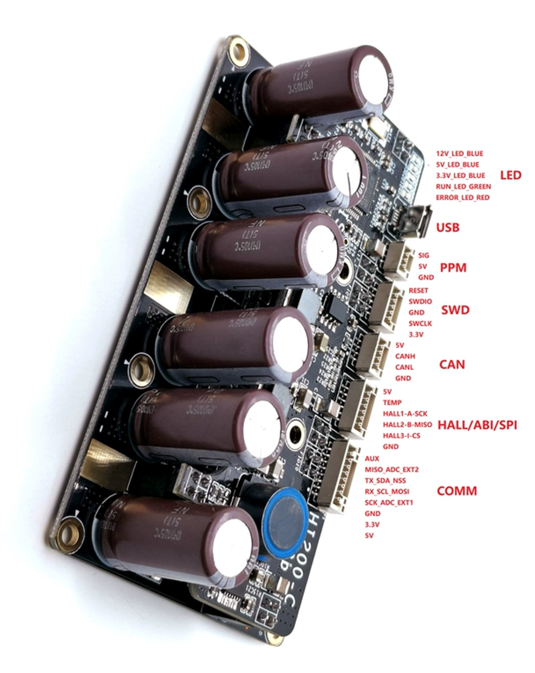 Hello i am completely new to this Forum and also not at all experienced with using VESC´s i have got this 200A 75V Vesc compatible ESC that i need a little help with. I know it is massively overpowered, but i would like to passively cool it, so it should be okay for my application. I want to drive a Sensored Ebike Hub Motor with it and have no idea how to solder the Sensor wires to the strange connectors, that came with the ESC. Also my information is pretty limited, the only things i can give is a Picture from the sellers website, that shows a pinout for all the connectors.