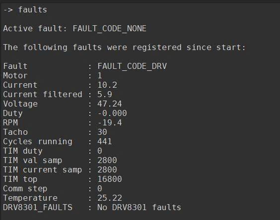 Within vesc the motor detection is also returning quite high (4 digits) values for resistance and inductance, which do not match the motor. Fluxlinkage is measured as 100 mWb, but also fails quite often.