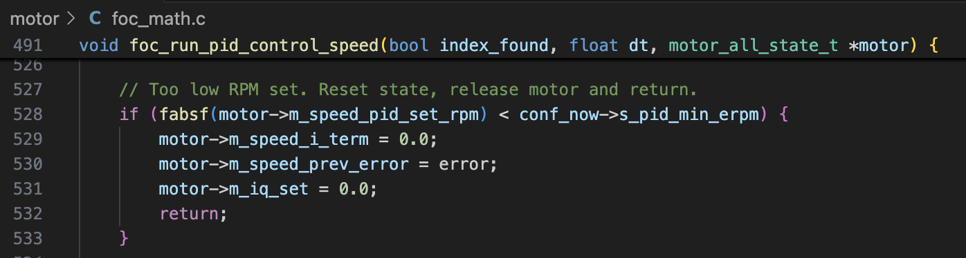 Could I just brutally comment this section of code or my whole problem is that I need to set Minimum ERPM to 0?)