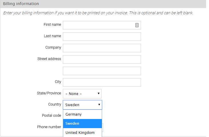 EDIT - worked fine leaving it blank. Just a bit odd not to give billing info - but at least it works!